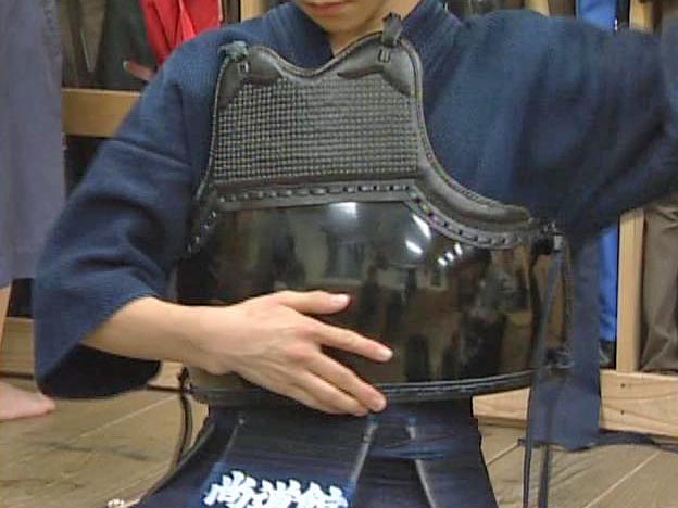 「胴」と呼ばれる防具です。お腹のまわりと胸を守ります。