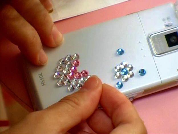 清水さんは、自分でラインストーンをはって、携帯電話をかざっています。