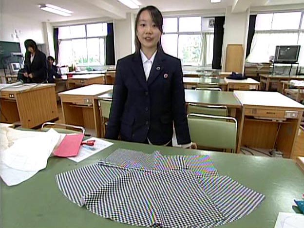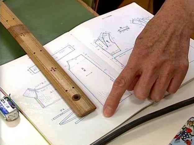 家庭科では服をつくることもあります。型紙を作って、布を切ります。