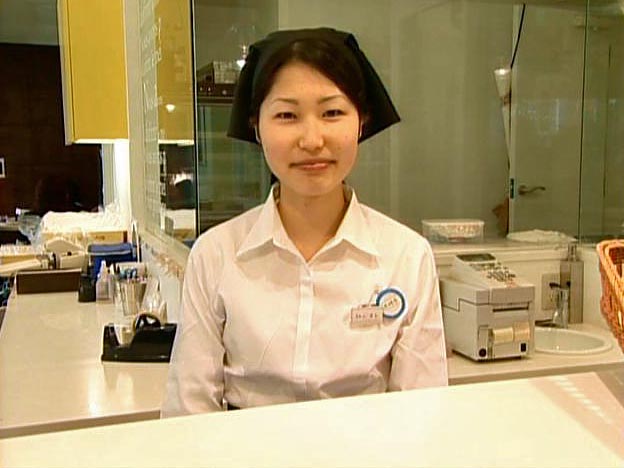 義田さんは、声もよく出ていて、接客態度もいいと、先輩がほめています。