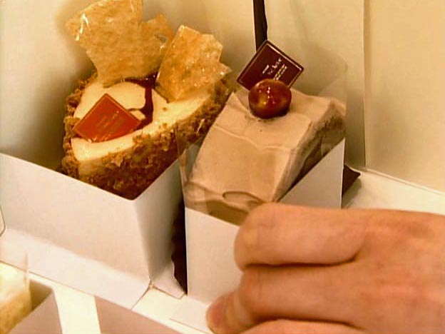 注文されたケーキを箱にていねいに入れます。ケーキがくずれないように、仕切りを入れています。ケーキが悪くならないように、ドライアイスや保冷剤を入れることもあります。