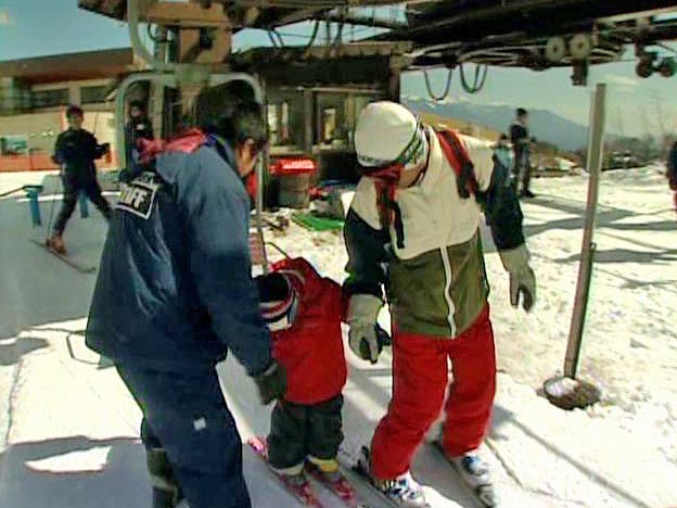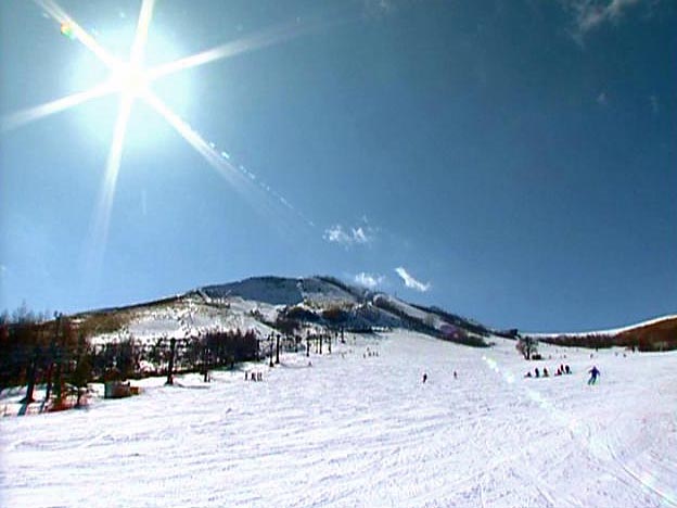 スキー場です。北の地方や、山が多い地方では、冬になると雪が降るので、スキーができます。スキーは、冬のレジャーとして人気があります。