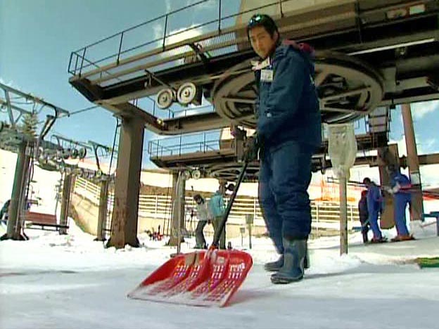 スキー場でアルバイトするのは、義田大峰さん。18歳の高校3年生です。義田さんの仕事は、リフトにお客さんを安全にゆうどうする係です。家がこのスキー場の近くなので、この仕事を選びました。