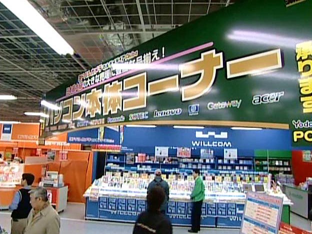 「ヨドバシカメラ」は、2005年に秋葉原の駅前にできた、とても大きな電気店です。ここはパソコン売り場です。